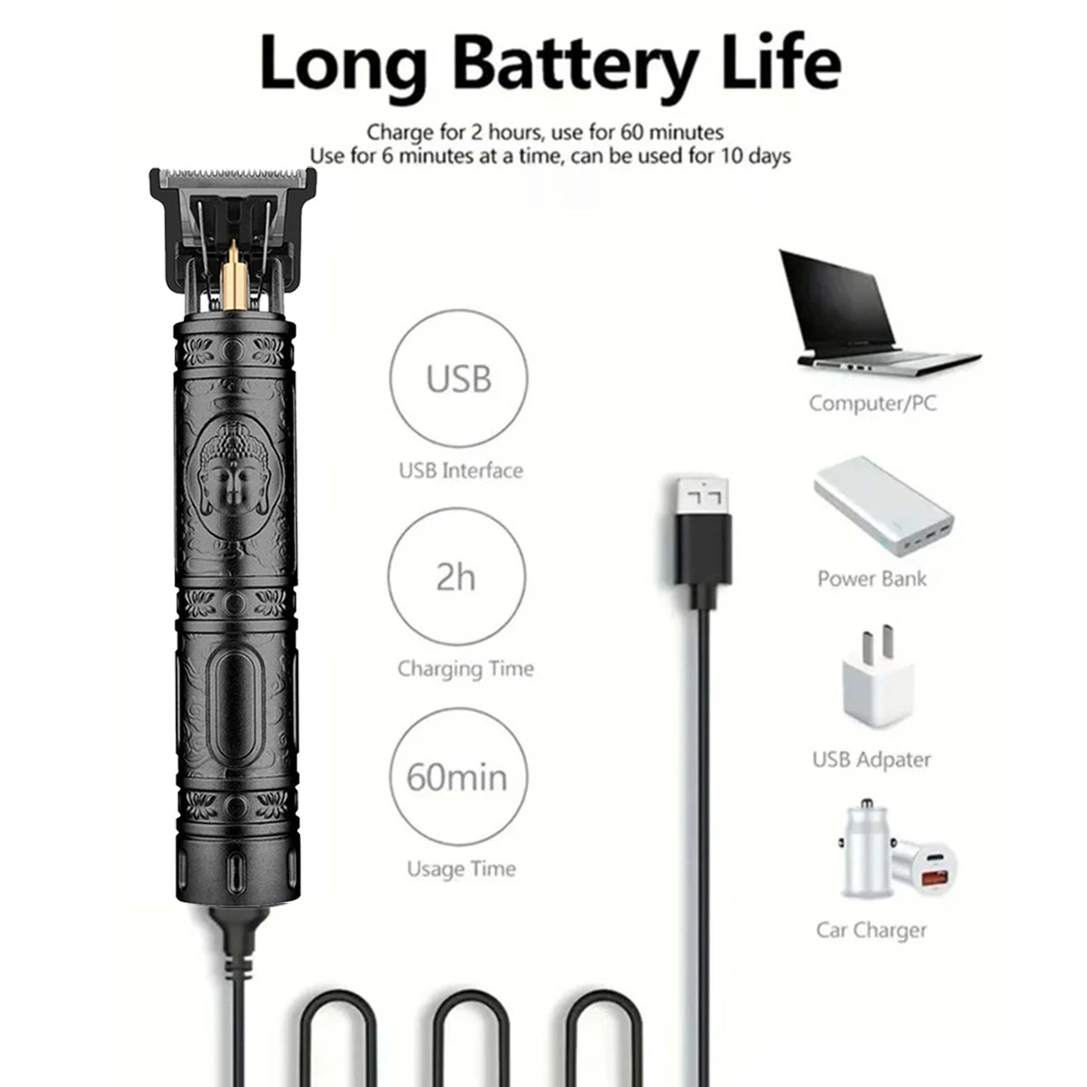 • Design elettrico e ricaricabile: questo tagliacapelli professionale è elettrico, ricaricabile e progettato per offrire agli uomini un'esperienza di taglio dei capelli comoda ed efficiente.